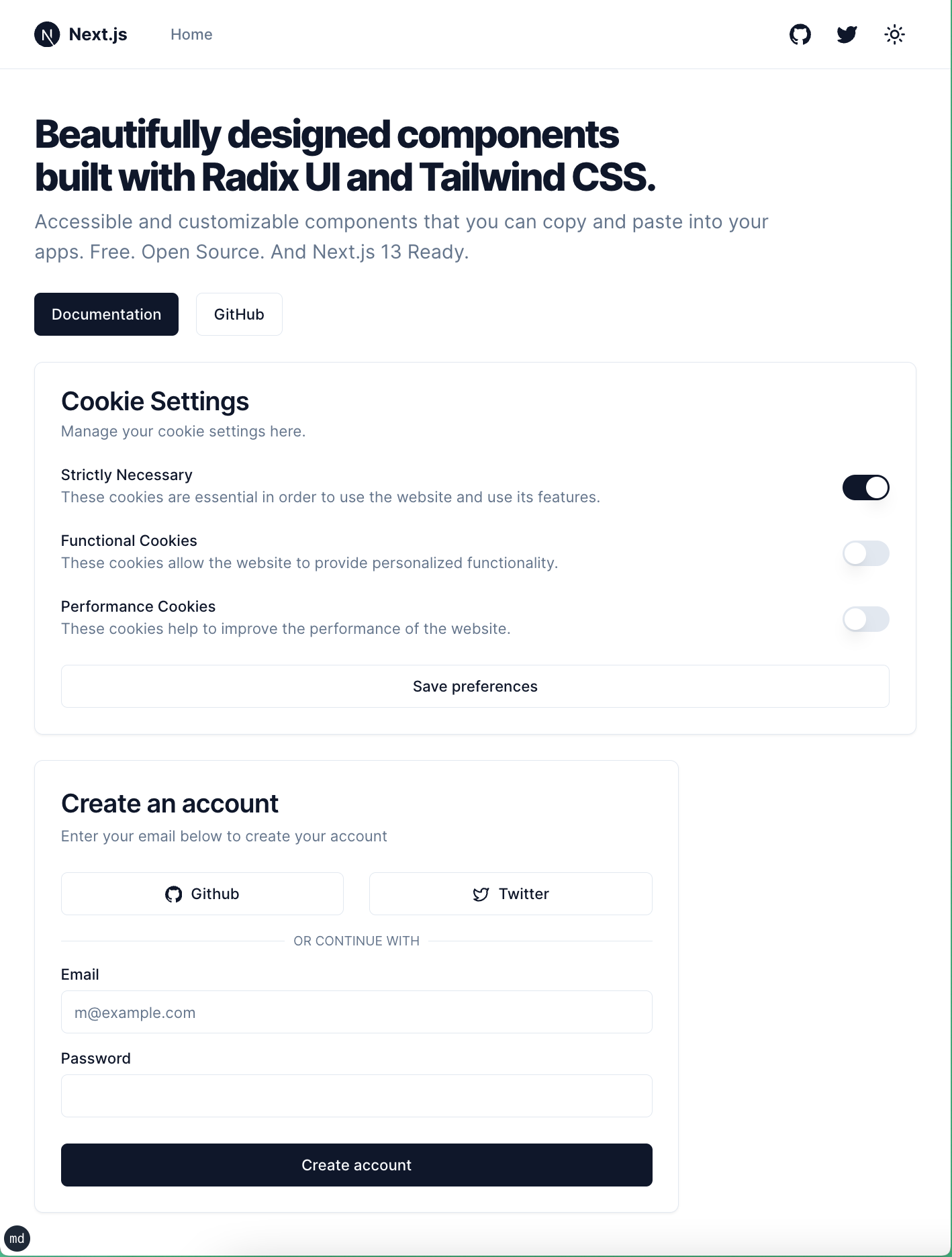 <Button className="w-full">Create account</Button>