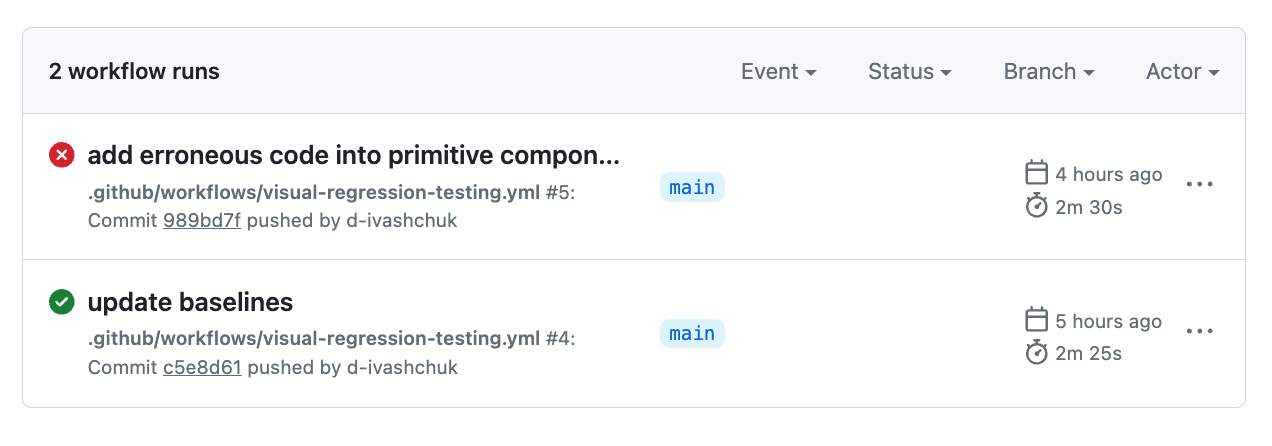 This is a very basic setup that allows you to run visual regression tests locally. Let's add a simple GitHub actions integration to make sure we can catch the visual regressions of our tailwind components continuously & effortlessly.